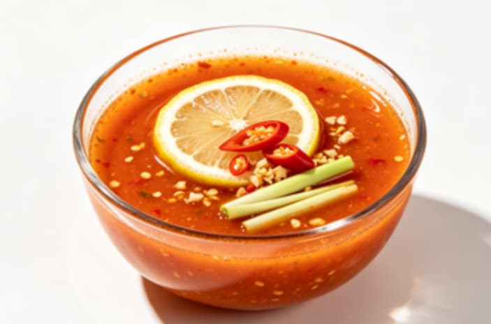 | Rasa: | Rasa Asam & Pedas Khas Thailand / Tersedia Varian Rasa Kustom | Tekstur: | Saus Cair yang Halus dan Asam |